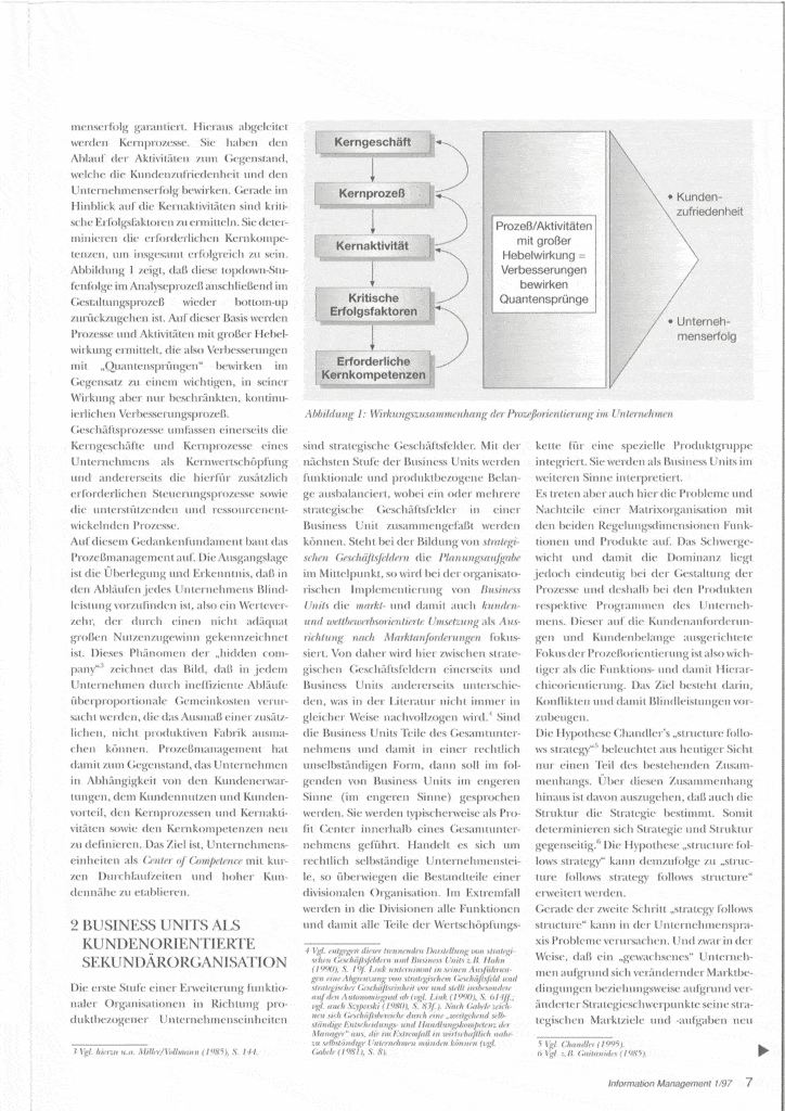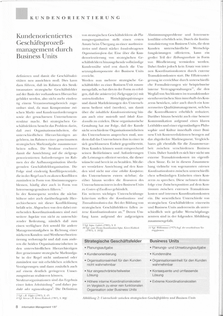 Auf den folgenden Seiten befindet sich im originalen Layout ein ausgewählter Artikel des damaligen Heftes. Verfasst von Prof. Dr. Armin Töpfer, der bis zu seiner Emeritierung 2010 den Lehrstuhl für Betriebswirtschaftslehre/Markenorientierte Unternehmensführung an der TU Dresden innehatte. Der Artikel steht unter dem Titel „Kundenorientiertes Geschäftsprozeßmanagment durch Business Units“.