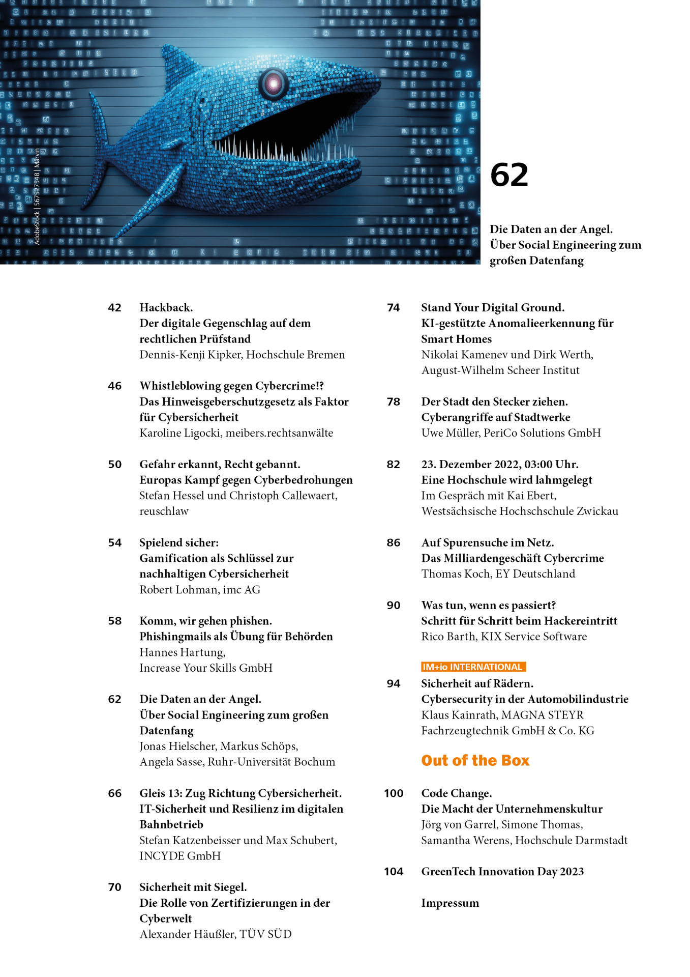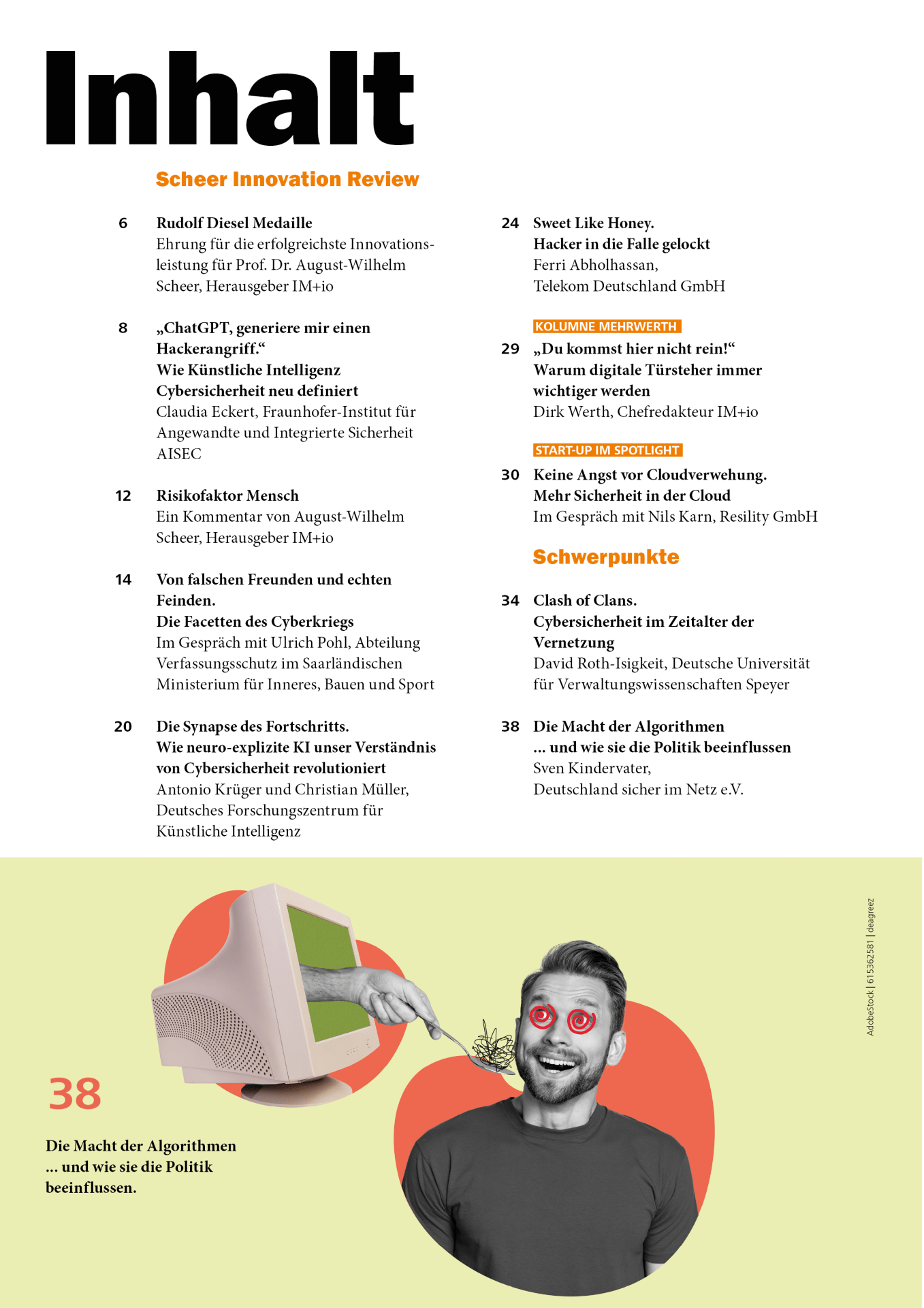 Wie Cybersecurity-Zertifizierungen, Whistleblowing, Künstliche Intelligenz oder innovative Smart Home-Lösungen die Sicherheit im Netz neu definieren und Cyberkriminalität den Kampf ansagen – all das erfahren Sie in der neuen IM+io rund um das Thema “Cybercrime”.