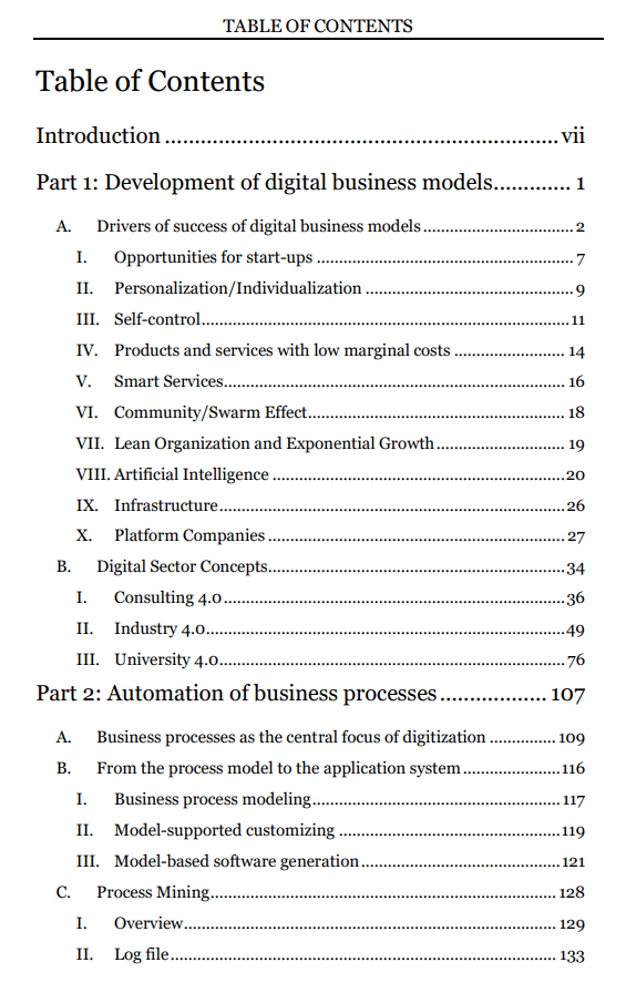 Digital companies are seizing entire markets and challenging existing businesses to change their business models. Concepts such as Industry 4.0 are changing entire branches of industry. Only those who know the drivers of success for digital business models can develop their own path to digitization. How can digital drivers of success such as personalization of products, self-control of systems, platform architectures or artificial intelligence be used systematically? Digital business models require new business processes. How do new software concepts and artificial intelligence technologies, data mining, robotic process automation, virtual reality, real-time process control or blockchain help to create and automate the necessary business processes? How do you find a compass in the jungle of new terms and hype in order to proceed safely? The answer to these questions should inspire the reader and lay the foundation for building and converting their own Digital Enterprise 4.0.